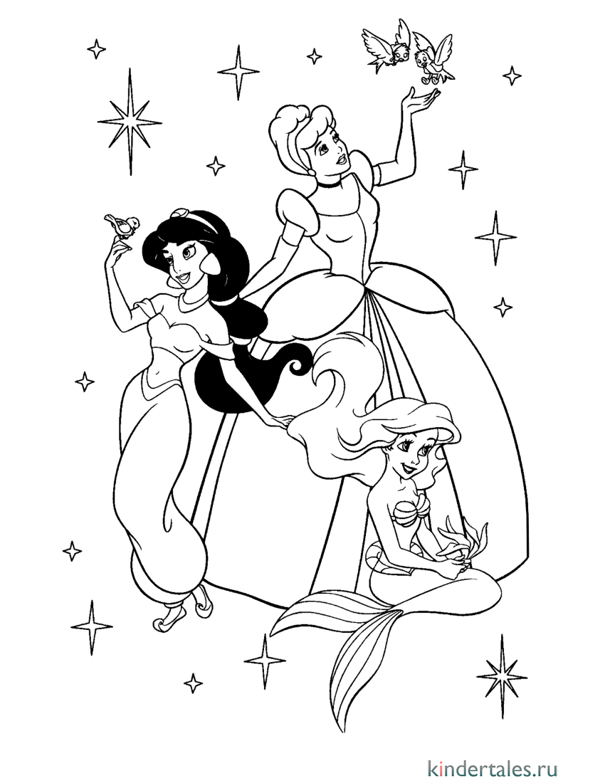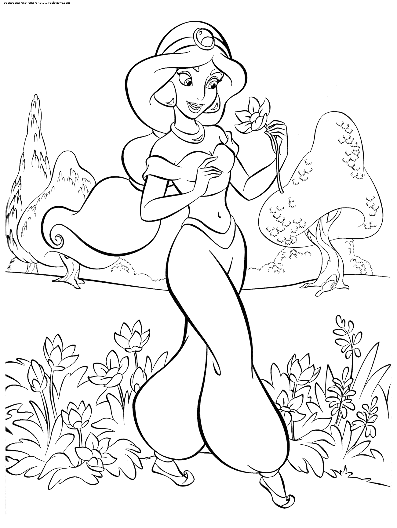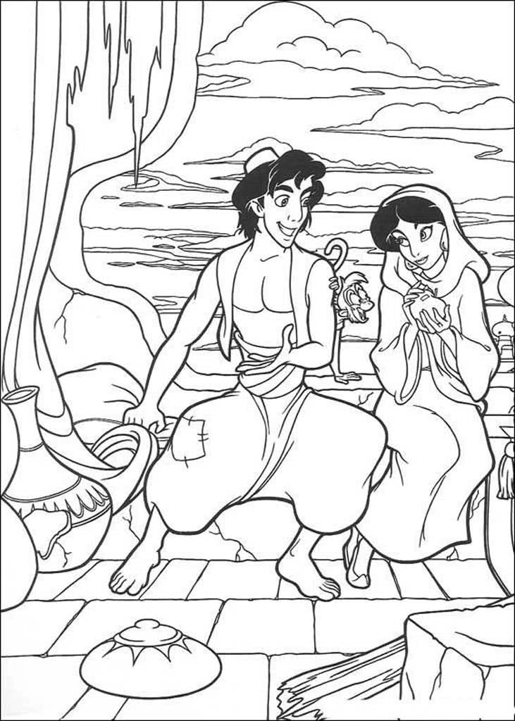 Jasmine – Prințesa din „Aladdin” este fiica sultanului – curajoasă, independentă și cu ochi negri ca noaptea. Planșele cu Jasmine sunt pline de elemente orientale: palat, covor fermecat și animale exotice.
