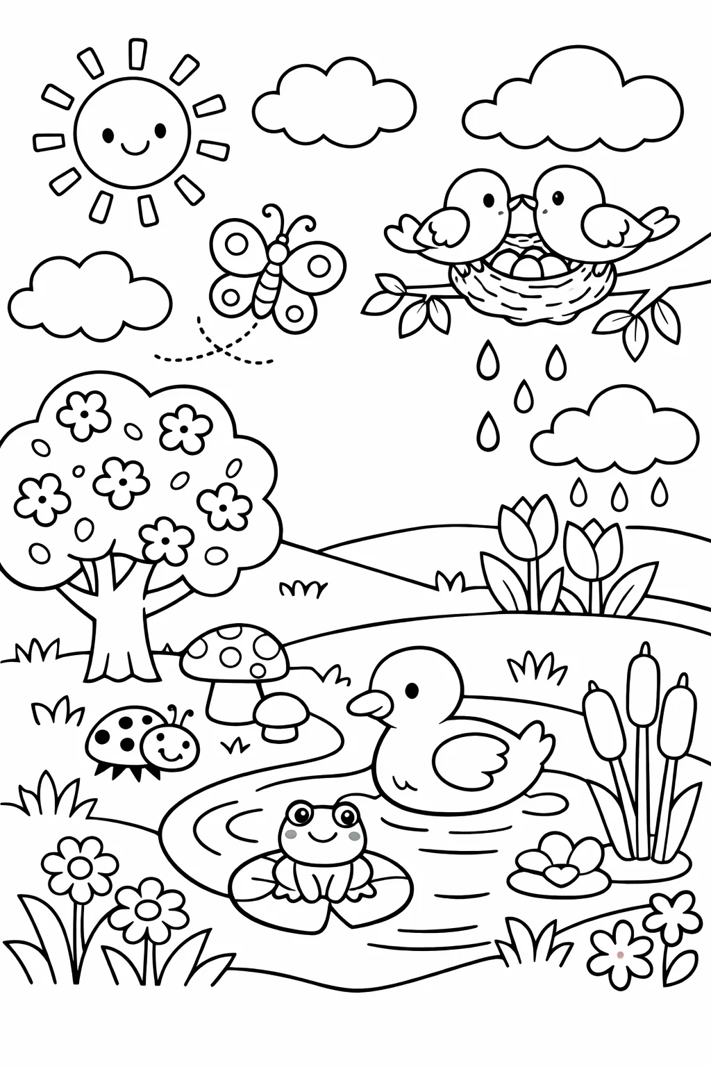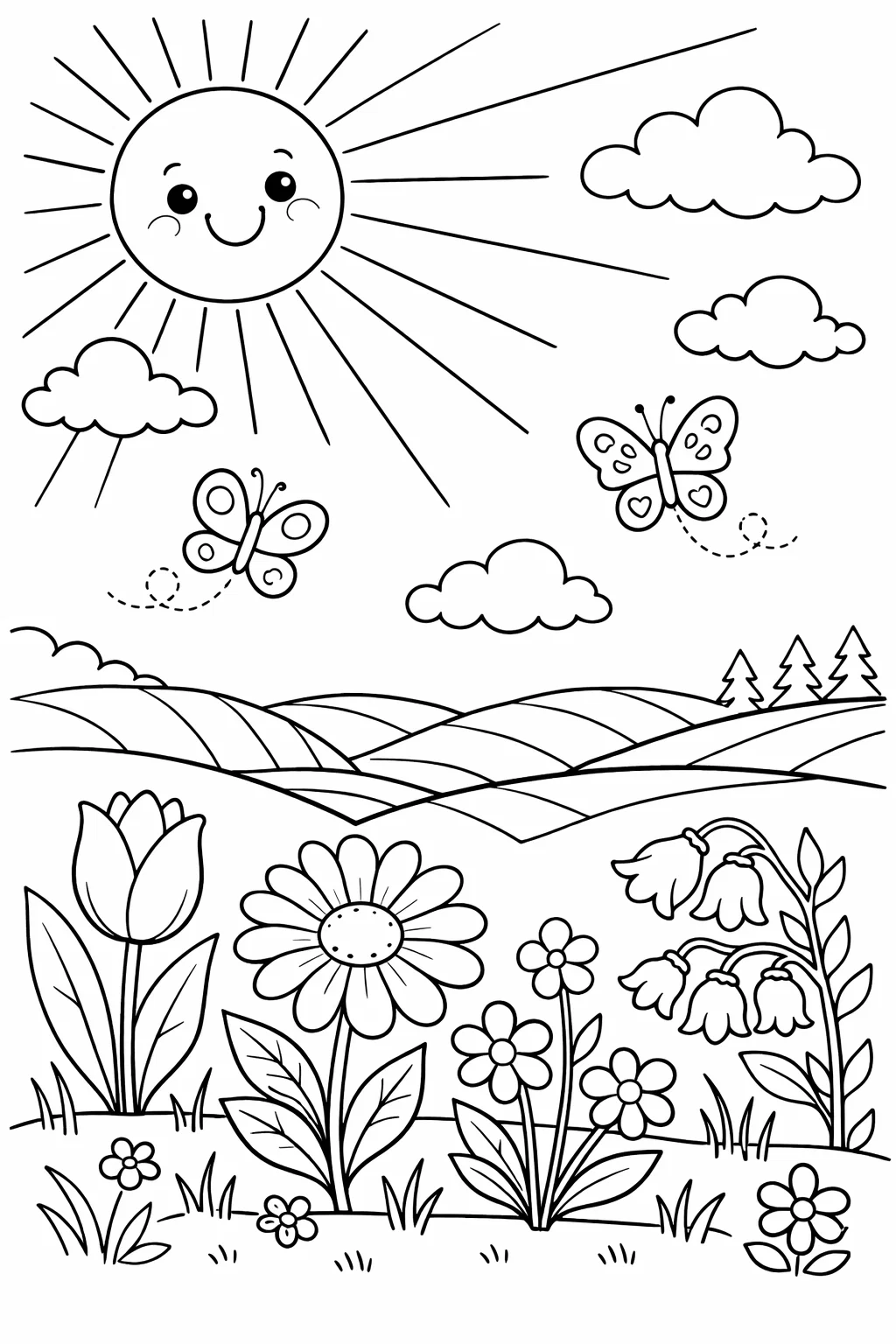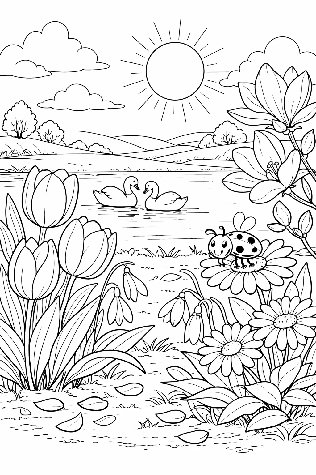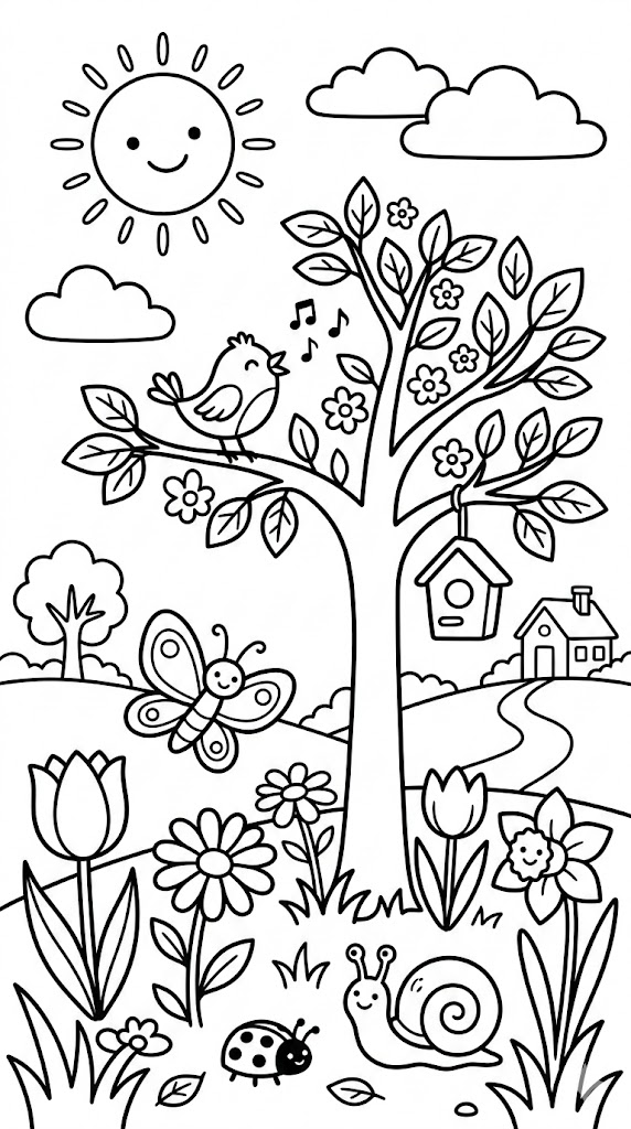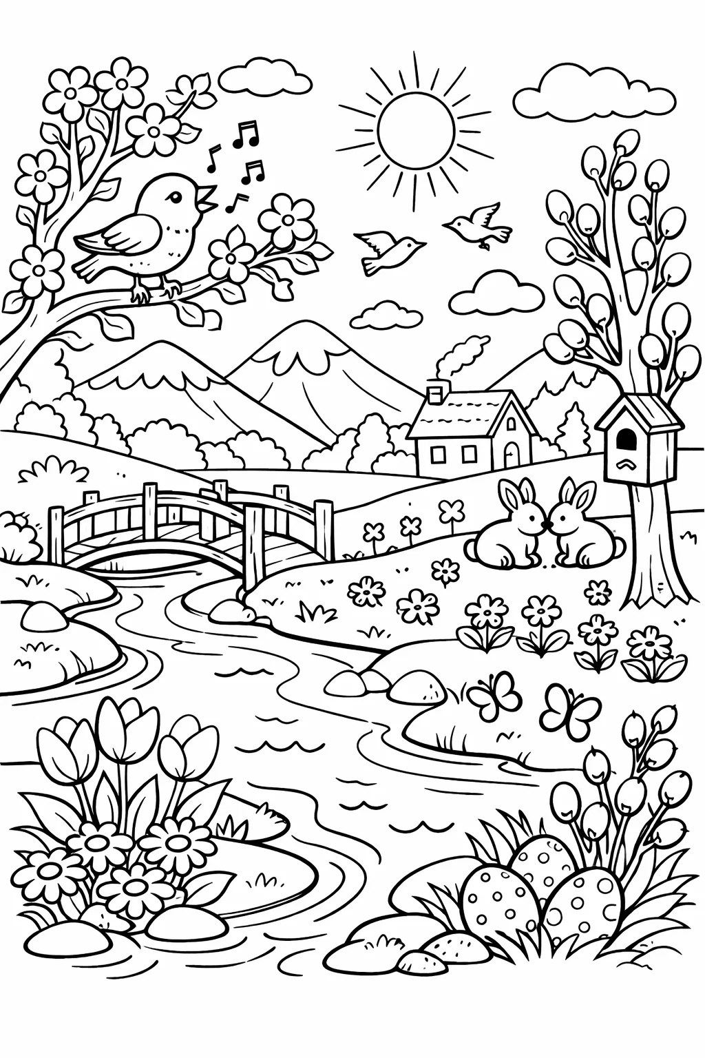 Primăvara este anotimpul renașterii naturii, când apar primele flori, copacii înmuguresc, iar peisajele devin pline de viață. În această colecție vei găsi peisaje de primăvară de colorat cu imagini alb-negru și contur clar, perfecte de imprimat sau de printat gratis. Toate planșele pot fi descarcă gratuit în format PDF, optimizate pentru format A4, astfel încât să le poți imprima ușor acasă.